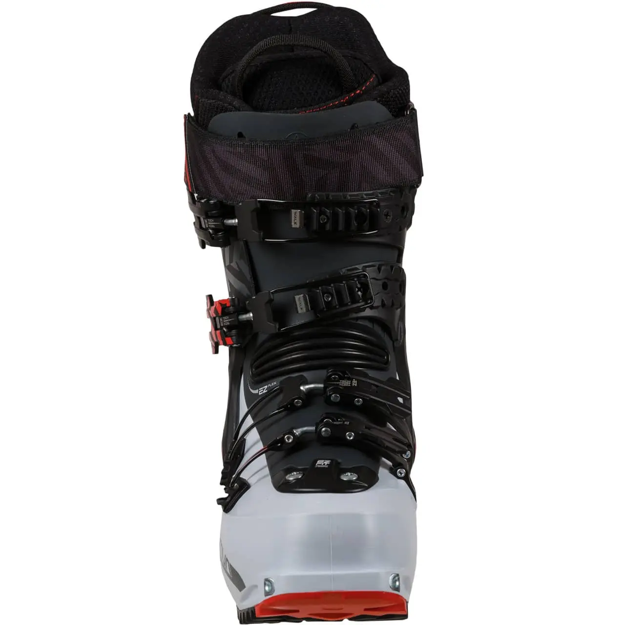 La mobilità del gambetto, pari a 60° dell’escursione totale, unita alla rullata accentuata e al sistema di cerniere brevettato EZ Flex della scarpetta, esalta la camminabilità del prodotto, che può essere utilizzato anche per passaggi tecnici su rocce e terreni scivolosi grazie alla suola integrale Vibram® dual-compound/double. La doppia compatibilità con gli attacchi race TECH e AT consente un’eccellente versatilità di utilizzo.